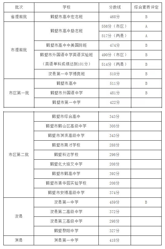 2020年鹤壁市普通高中最低控制分数线:208分。