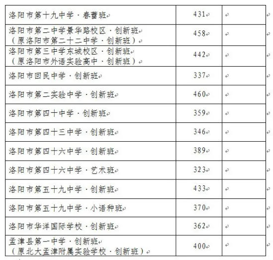 栾川县实验高中:招生570人,录取分数线410分。