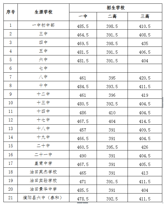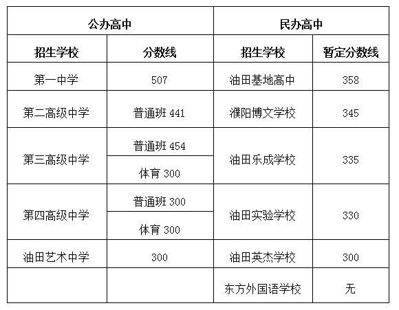 油田高中录取分数线