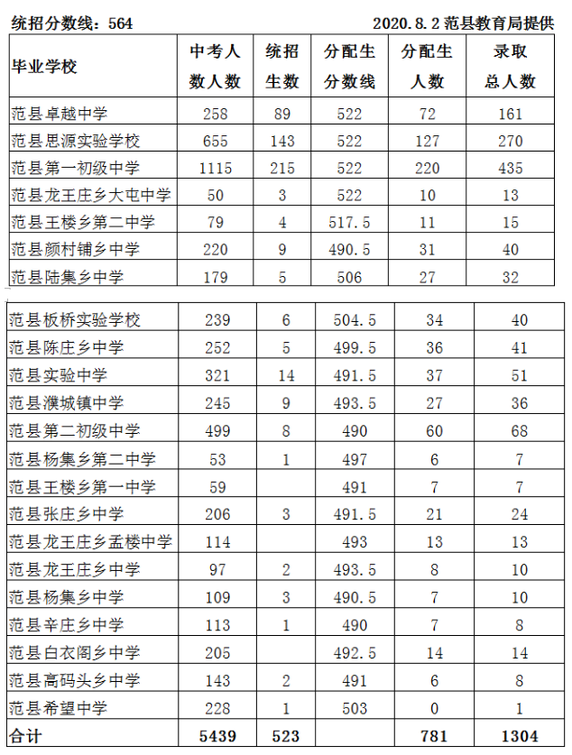 济源一中、济源高级中学、济源四中分配生最低,控制分数线为490.5分。