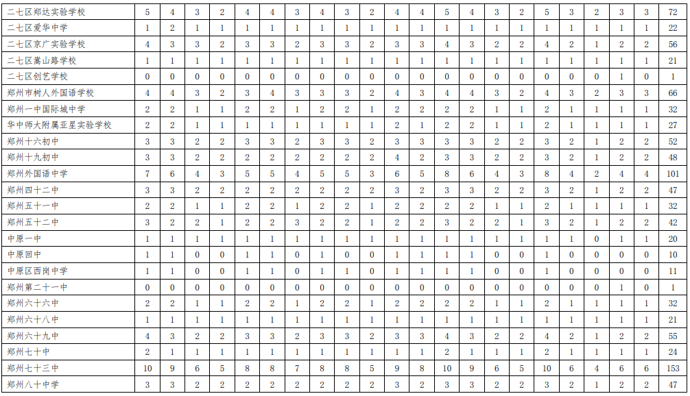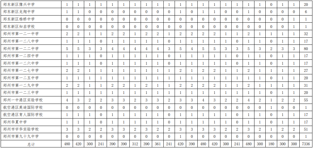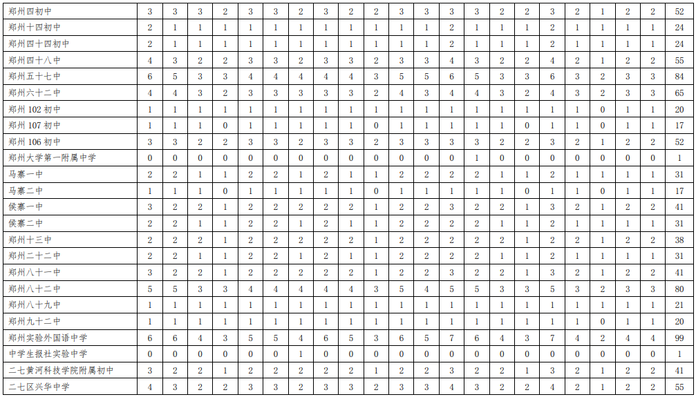 附表:1.2020年郑州市市区普通高中分配生名额分配表