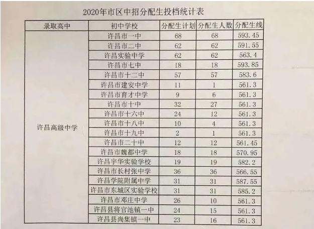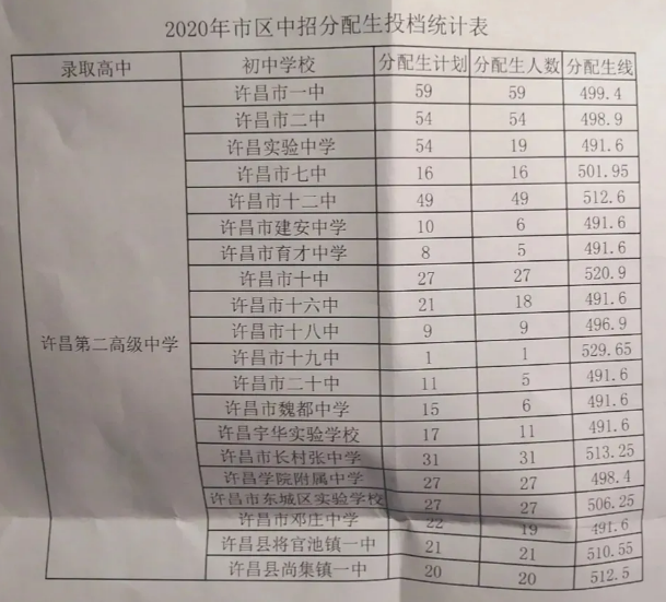 济源一中、济源高级中学、济源四中分配生最低,控制分数线为490.5分。