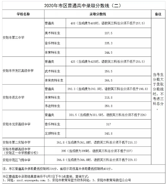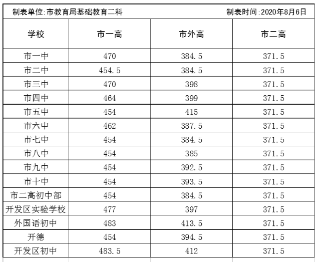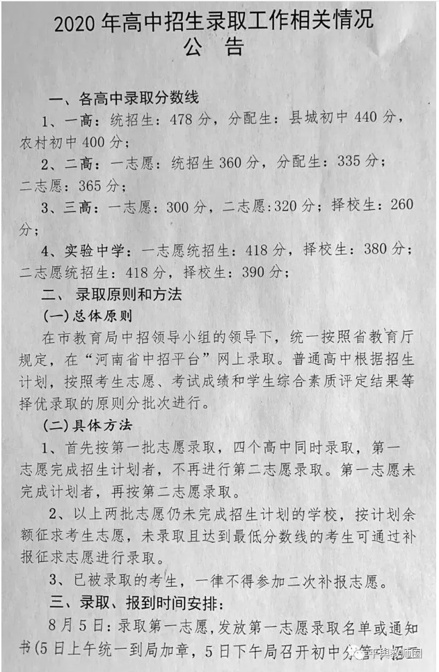 二、公办普通高中(登封市第一高级中学、登封市实验高级中学、登封市嵩阳高级中学、登封市外国语高级中学)统一录取控制分数线376分。
