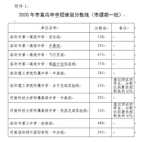 河南省各地2020中考分数线陆续公布,小编收集整理了2020河南省各市区已经公布了的中考录取分数线,供同学们和家长参考。焦虑主要来自两个方面,一是录取率,全省148.3万名应届初中毕业生中共有130余万人参加中招考试,普通高中招生任务75万人,这意味着普通高中的录取率仅50%多。二是分数线还未公布。公布后,才真正知道孩子是否能考上心仪的学校。以下是小编整理的现阶段已公布的部分地市及学校录取分数线,供各位考生及家长参考(具体分数线以当地教育局和学校公告为准)。