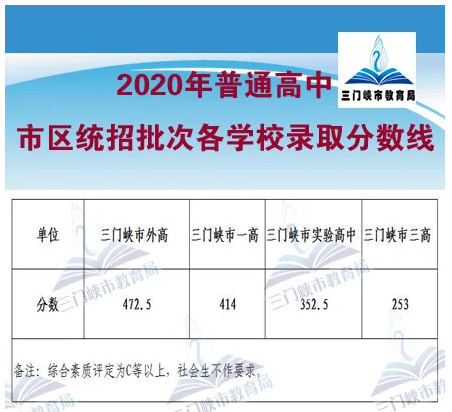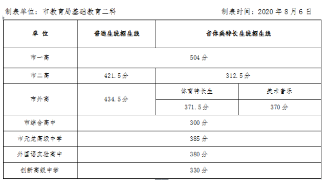全市2020年普通高中最低录取分数线为247分,达不到此分数线的考生不予录取,不建普通高中学籍。