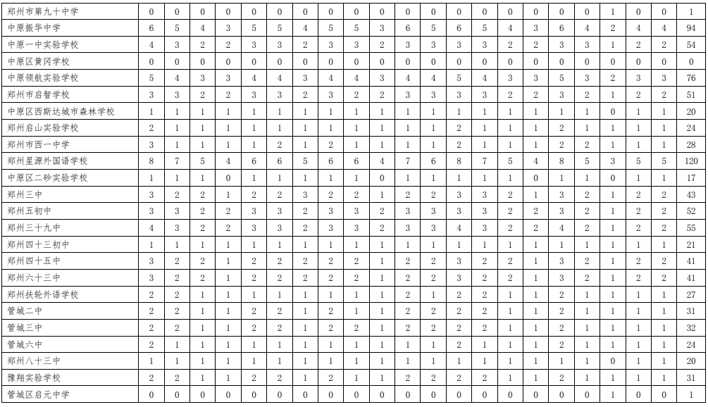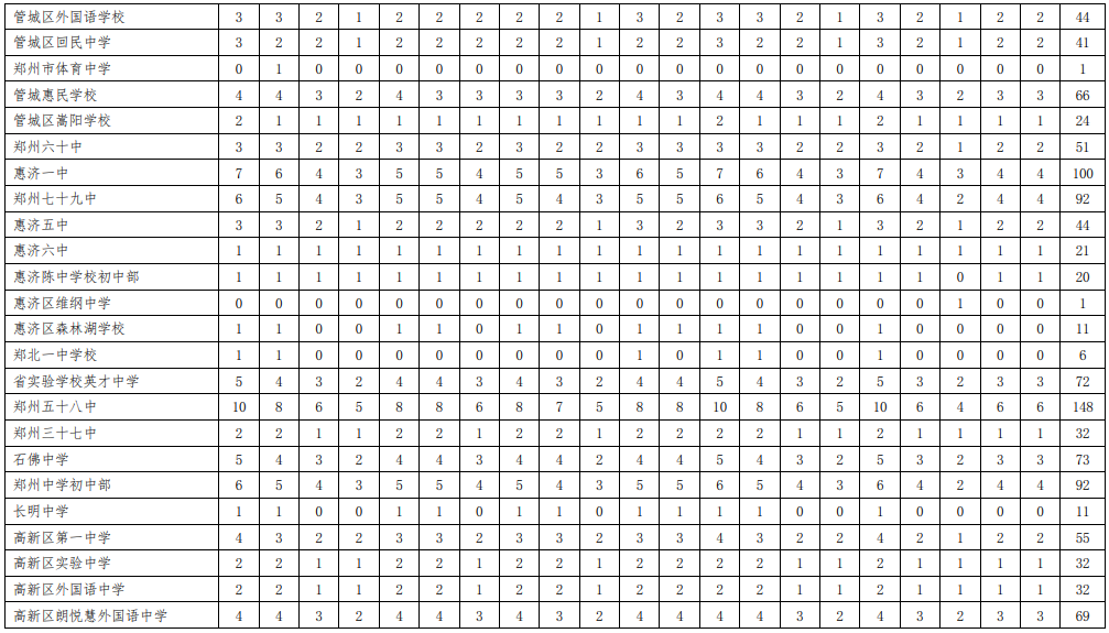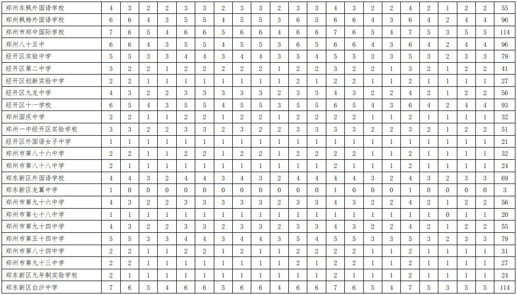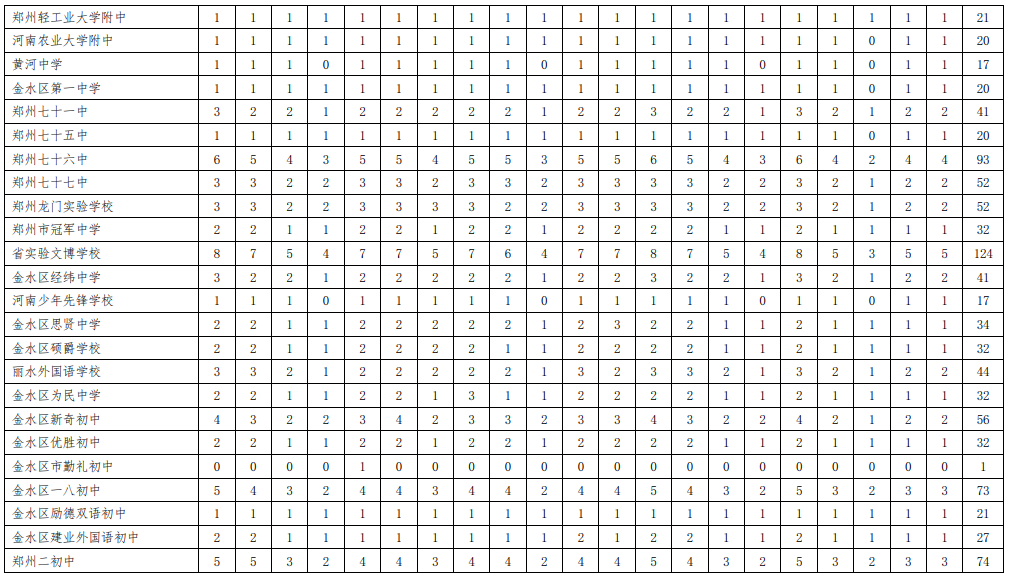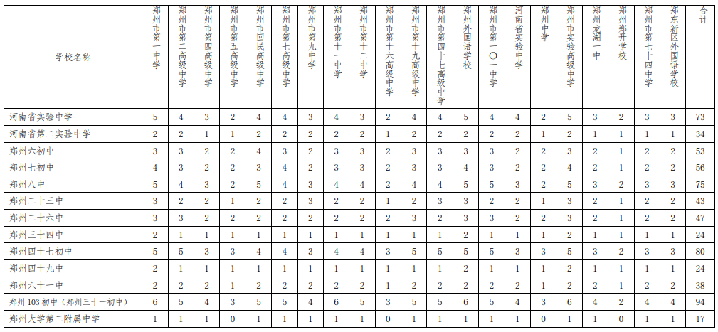 附表:1.2020年郑州市市区普通高中分配生名额分配表