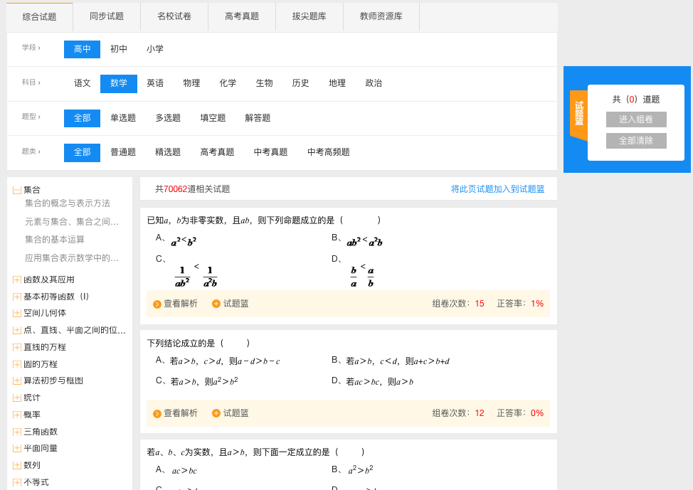 试题试卷系列:初、高中知识点综合试题,初、高中同步检测试题,名校试卷,中高考真题,拔尖题库等。